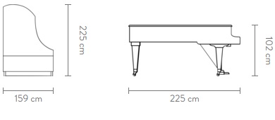 Our Concert Grand 290 Imperial and the Grand Piano 225 come with additional bass notes Model 225 has in total 92 notes and our 290 has 97 (8 full octaves) rather than the standard 88 tones. Certain works by Busoni, Bartók, and Ravel, can only be performed accurately on these instruments. Thanks to the enormous resonance board and the additional strings the pianist is able to enjoy an orchestral sound. Imperial in sound and appearance: the Bösendorfer Imperial Line.